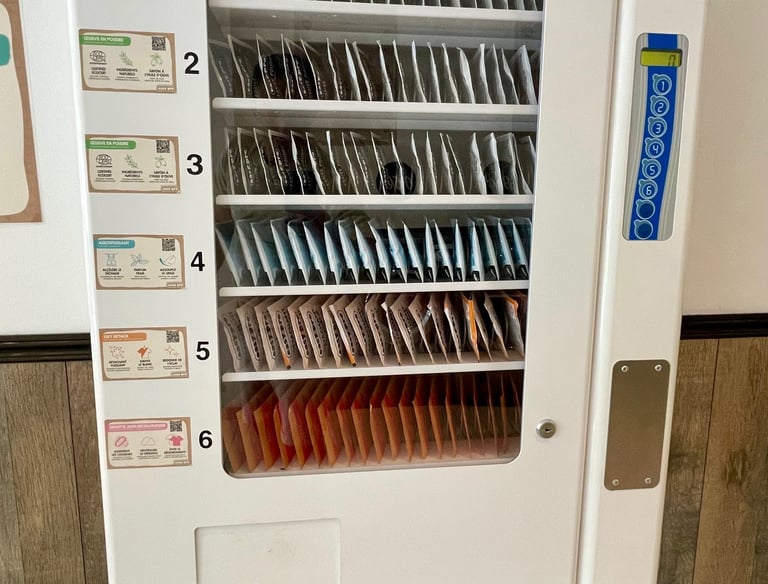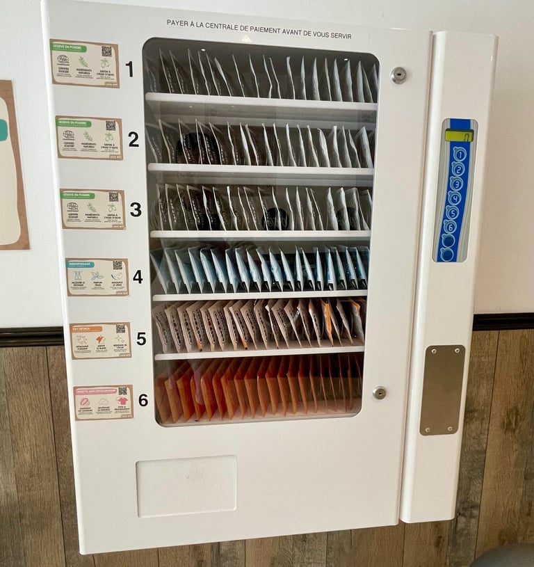 Distributeur de lessive et adoucissant sur place.